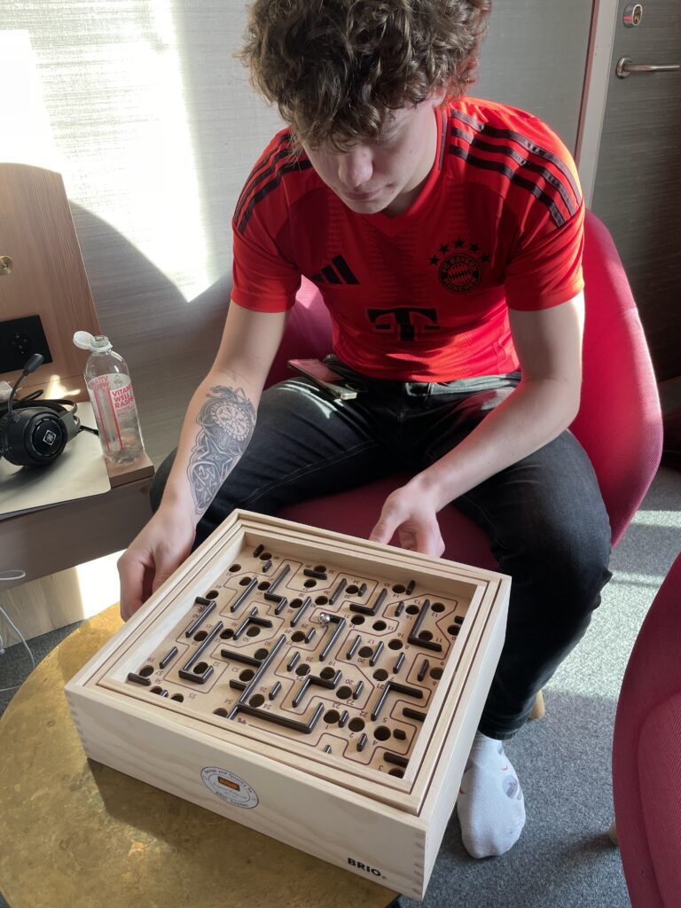 På måndagen fick jag skjuts av bonus-sonen William till Uppsala då Alexander behövde stanna i Stockholm och jobba och gå på Öppet hus inför Tyras gymnasieval. Jag och William hade en rolig roadtrip till Uppsala och tog sen en promenad runt slottet. William fick också prova på alla mina aktiviteter jag har fixat med på hotellrummet. Jag minns första veckan när jag flyttade in i hotellrummet och Alexander sa: ”Folk tror att de kommer hit på besök och ska ta en kaffe med en trött/sjuk Cissi, och så har du fixat värsta femkampen”. Känns skönt att lite av gamla Cissi finns kvar än så länge. Så William kämpade sig högst upp på High Score-listan för Labyrint (till Alex och Bellas stora förtret), han fick också måla i min fina målarbok, medan jag pusslade och löste korsord och sen avslutade vi med en match i Fussball Bordsspel (vi behöver inte gå in på vem som vann denna gång). Det hela påminde lite om när jag och Alex besteg Kebnekaise och plockade upp hela Lattjolajban-lådan på toppen av berget (finns i ett annat blogg-inlägg). Sen fick William följa med och se hur strålningen går till, jag tror på att involvera barnen så mycket de själva vill för detta påverkar ju i allra högsta grad hela familjen såklart.