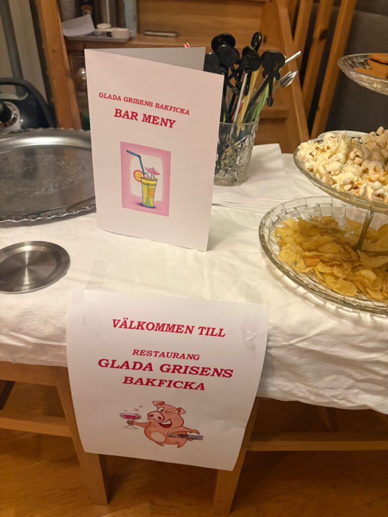 Jag lämnade ju en riktig Cliffhanger i förra bloggen, med att jag skulle bjuda mamma på en rejäl överraskning, och vilken lyckad kväll det blev. Jag har länge följt Wahlgren/Wistams podd och vet att mamma följt den ännu längre än jag. Så i år när dem skulle fira 10 år tyckte min kära man att detta skulle passa oss och att vi två nog skulle behöva oss ett gott skratt och något annat att tänka på. Så vi överraskade mamma med att Bella hämtade upp henne och försökte göra henne förvirrad genom att köra runt henne i Tumba. Problemet är bara att mamma har så dåligt lokalsinne så hon förstod knappt att det var ett prank. Jaja, till slut kom de hem till oss där vi hade förberett med en alldeles egen bar med hennes favoritdrinkar. Två duktiga bartenders hade vi anställt kvällen till ära, Stefanie och Nathalie. Ni som känner mig vet att den optimala kvällen för mig involverar något eller några av alla mina älskade barn och ungdomar jag har kring mig (se bara det ”lilla” bröllopsföljet på vårat bröllop). Det blev en mysig middag med ungdomarna och gott i glasen. Därefter körde Alexander oss till Rival och showen, och mamma som trodde överraskningen var själva baren och middagen blev glatt överraskad. Det var en riktigt rolig kväll som avslutades med Tjuvjakts ”Tusen spänn” som allsång, stämningen var verkligen på topp och precis vad vi behövde nu.